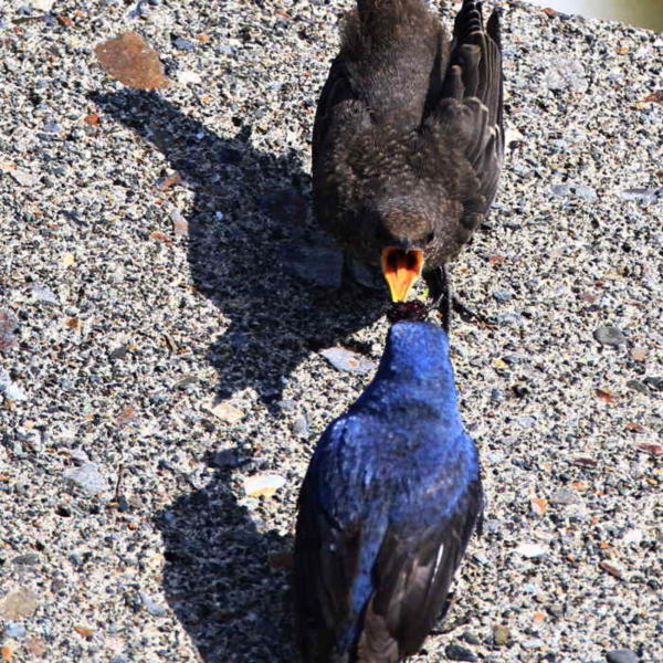海岸のテトラポット上で巣立ち雛に桑の実を与えていました。